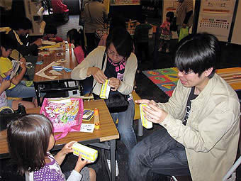 劇場ロビーでの北勢線運転シミュレータ体験はチビッ子たちに大人気。家族と一緒にペーパークラフトを作ったり、場内はとっても明るい雰囲気でした。