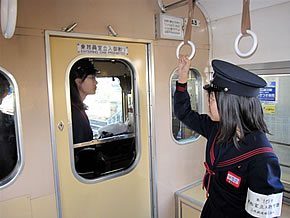 11月21日(水)、東員駅~西桑名駅間の乗務を体験、桑名市立光風中学校二年生のお二人が北勢線に来てくれました。